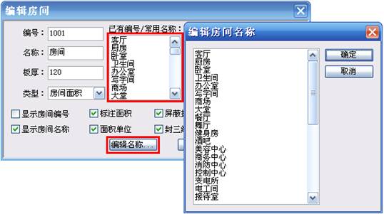 4.房間名稱。下圖中右側列表中的常用房間名稱可以編輯修改Tarch8\sys文件夾下的spacenam.txt文件。