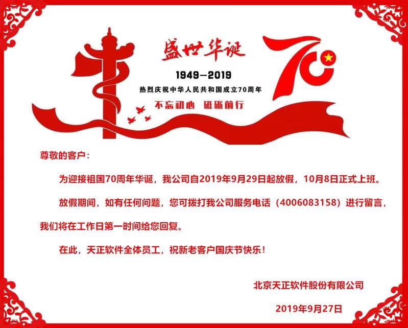在此,天正軟件全體員工,祝新老客戶國慶節快樂! 北京天正軟件股份有限公司 2019年9月27日