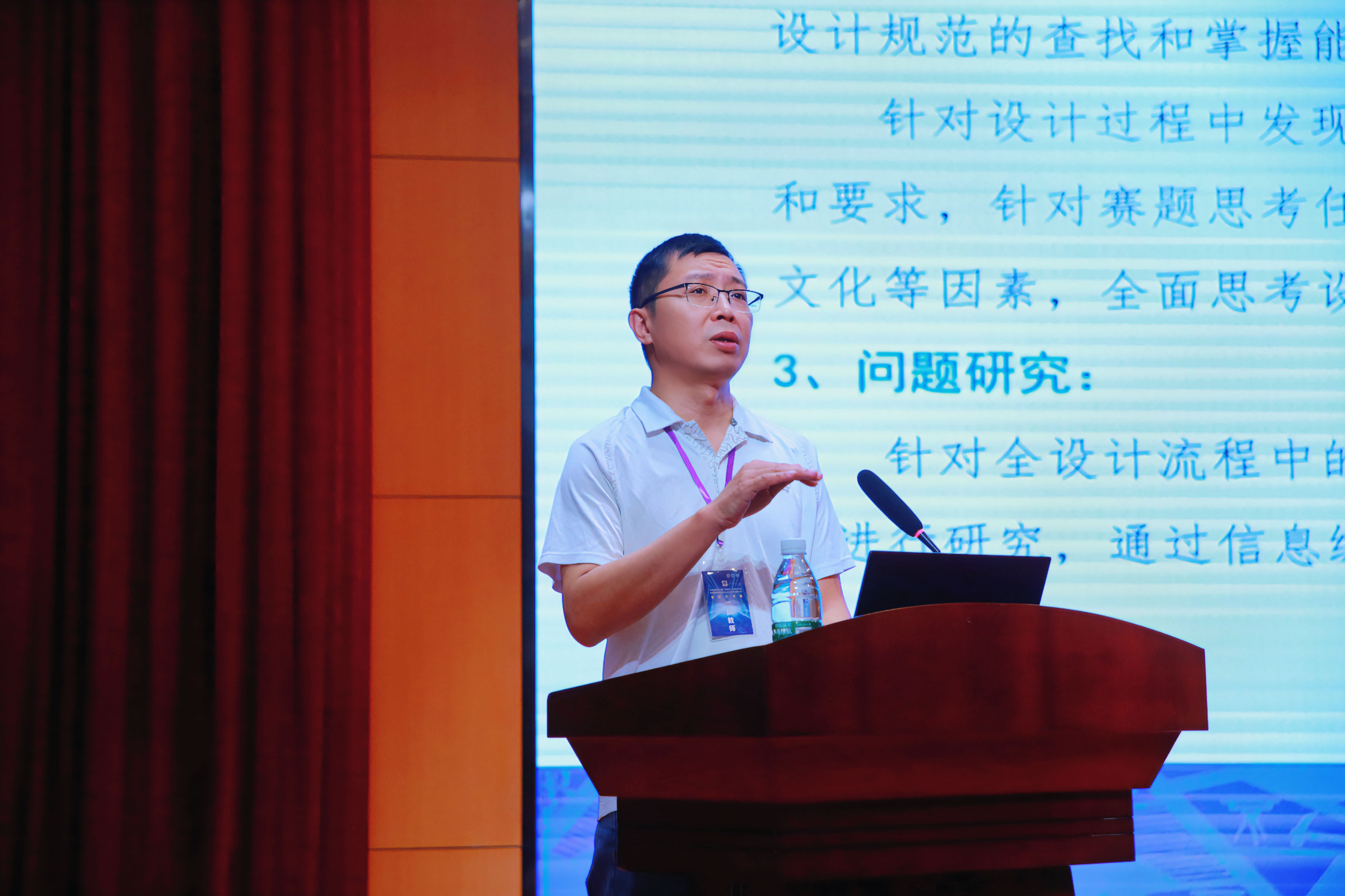 大連民族大學范偉老師做了“以賽促教,以賽促學,師生共建,筑夢未來”的報告,范老師從指導教師的角度出發,介紹了如何通過學科競賽來促進教學和學生學習。范老師不僅介紹如何展現建筑設計思路、提交完整作品資料等大方向,還介紹了諸如渲染圖要配夜景、雨景等小技巧,可復制性極強。